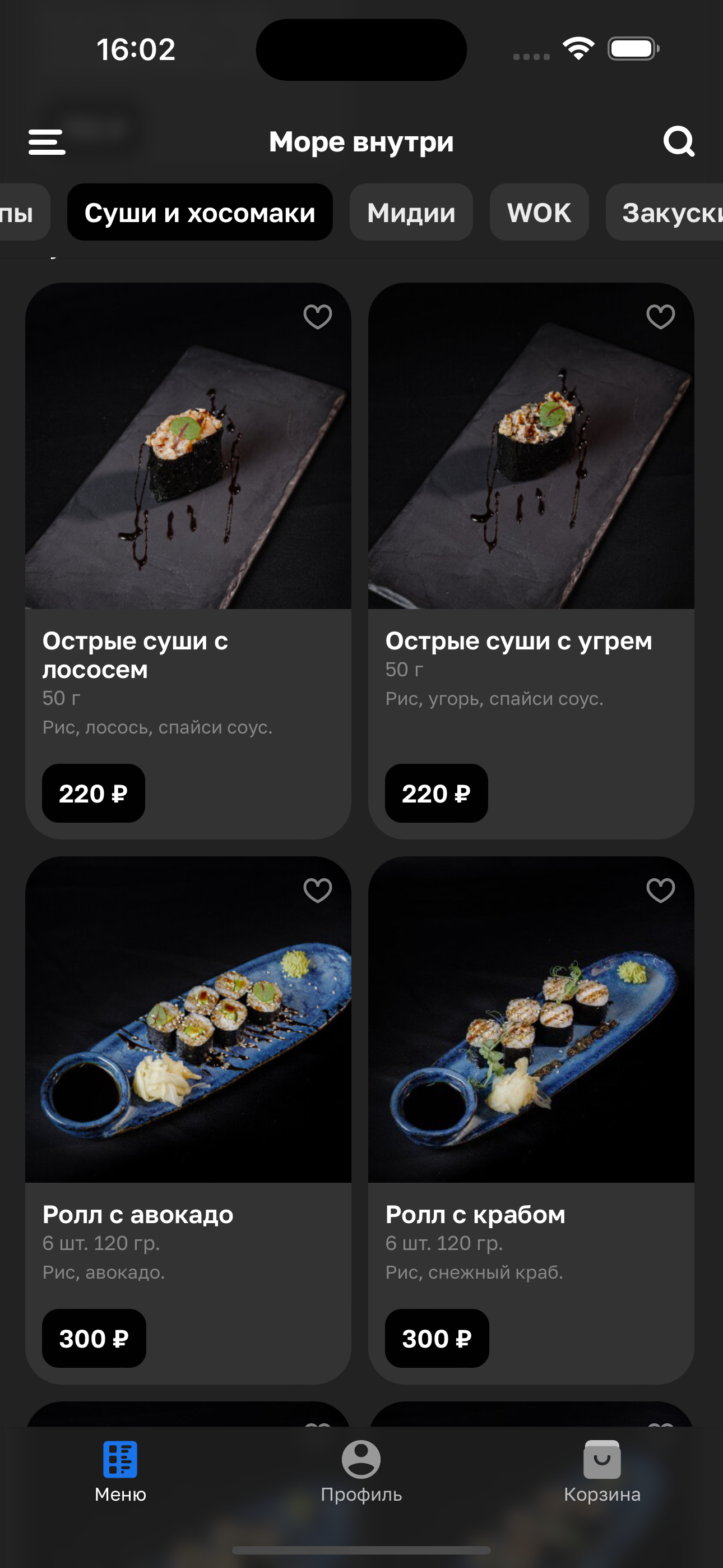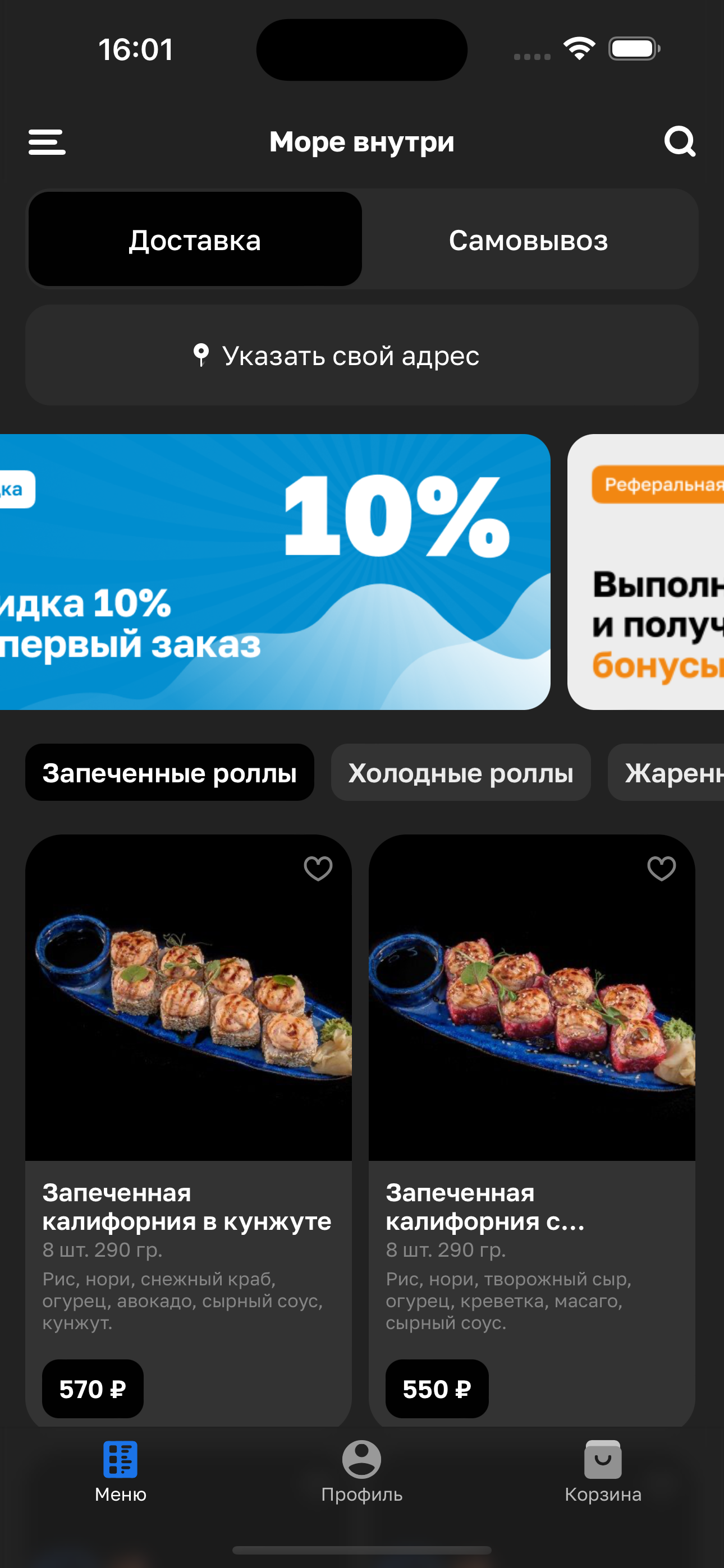 Ролл Филадельфия, ролл Бонито, ролл Тори терияки, ролл Калифорния в кунжуте, ролл Огурец, ролл Краб.